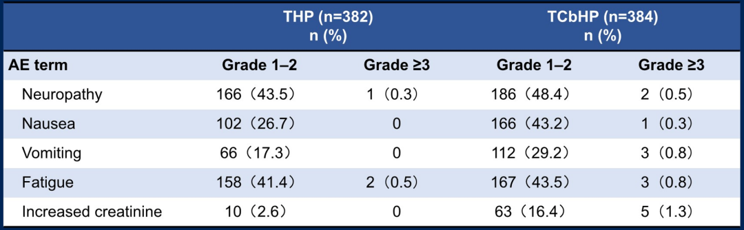 然而,我并不认为这种“降阶梯”治疗方案可以适用于所有患者。该研究入组人群的基线特征显示,T1-2期患者占比约80%,T3-4期患者占比约20%,II期患者约占四分之三,而III期患者约占四分之一,可见总体的入组患者肿瘤负荷相对较低,且目前尚未看到长期生存数据。因此,在目前的临床实践中,TCbHP仍然是标准选择,但对于肿瘤负荷较小或年龄较大、耐受性差的患者,“降阶梯”治疗方案是一个可考虑的选项。