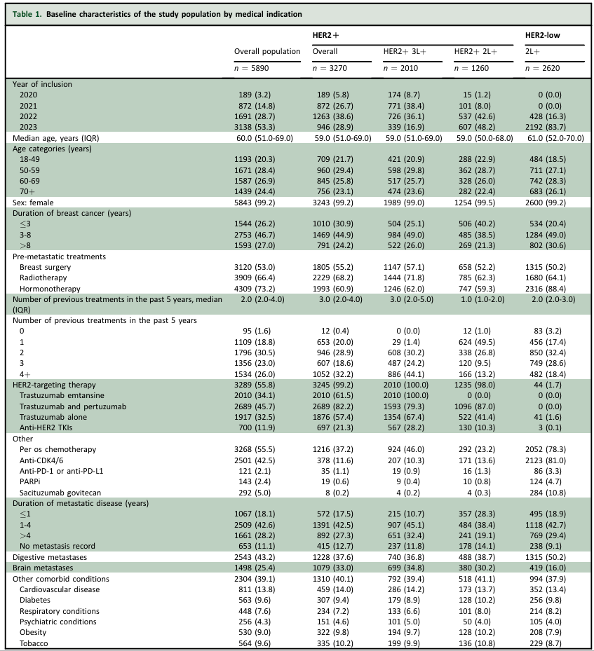 真实世界中HER2阳性乳腺癌患者使用新型HER2 ADC的治疗情况和结局:一项法国观察性研究