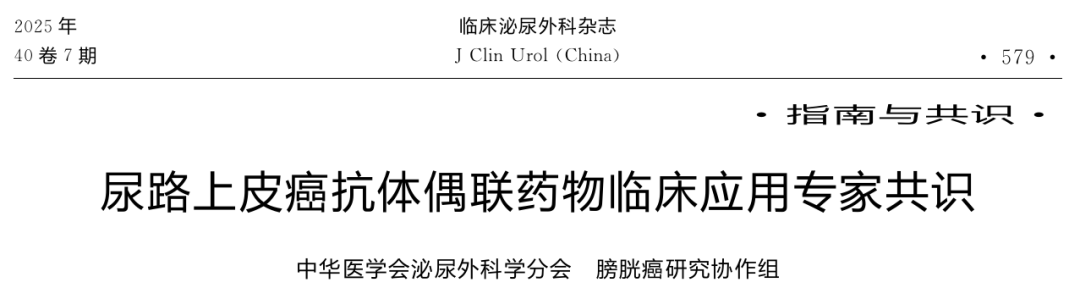 中华医学会泌尿外科学分会,膀胱癌研究协作组.尿路上皮癌抗体偶联药物临床应用专家共识[J].临床泌尿外科杂志,2025,40(07):579-586.DOI:10.13201/j.issn.1001-1420.2025.07.001.
