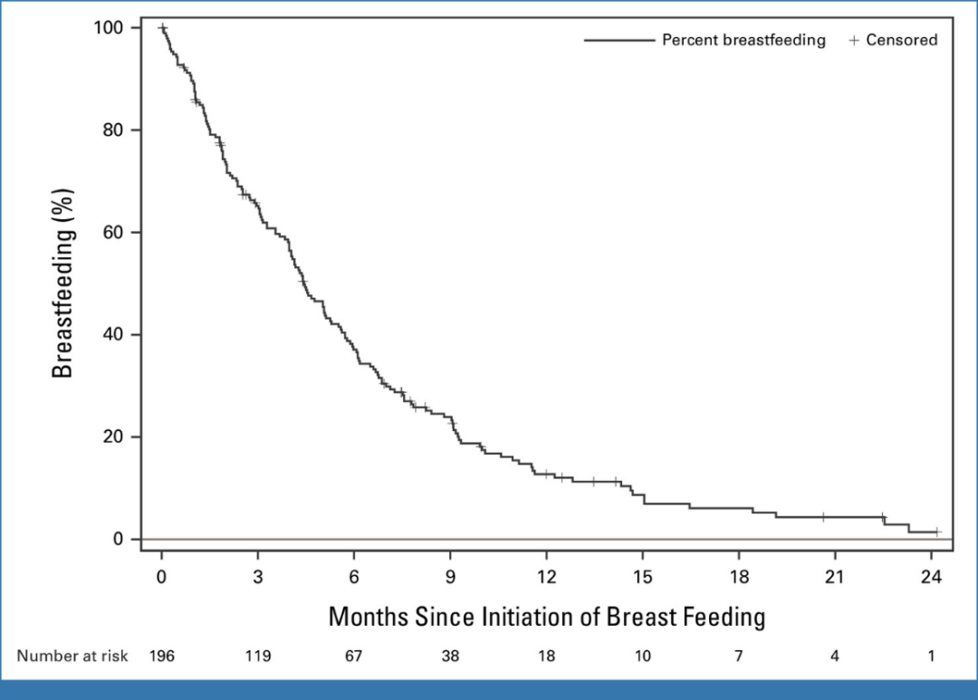 在首次活产后的整个研究期间,研究团队共记录到9例发生乳腺癌事件。其中,196例母乳喂养者中6例发生乳腺癌事件,包括2例局部复发、1例对侧复发、1例区域复发以及2例远处转移。117例非母乳喂养者有3例发生了乳腺癌事件,包括1例局部复发、1例区域复发和1例远处转移。