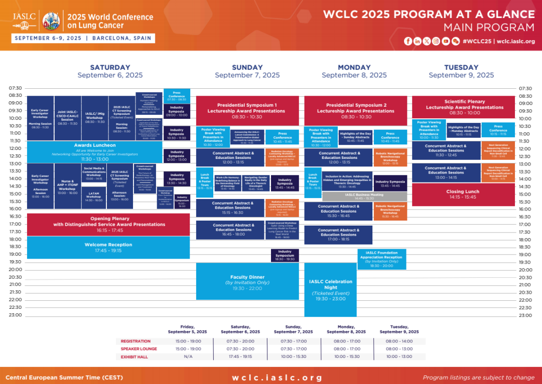 由国际肺癌研究协会(IASLC)主办的2025年世界肺癌大会(WCLC 2025)将于2025年9月6日至9日在西班牙巴塞罗那举行。作为肺癌及其他胸部恶性肿瘤领域全球领先的多学科肿瘤学盛会,WCLC致力于传递该领域最前沿的诊疗进展,为世界各地的专家学者及研究者提供分享前沿研究成果、促进合作交流的平台。