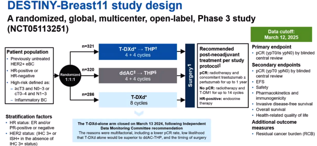 [8]Nadia Harbeck,et al.DESTINY-Breast11:Neoadjuvant trastuzumab deruxtecan alone(T-DXd)or followed by paclitaxel+trastuzumab+pertuzumab(T-DXd-THP)vs SOC for high-risk HER2+early breast cancer(eBC).ESMO 2025;Abstract 291O