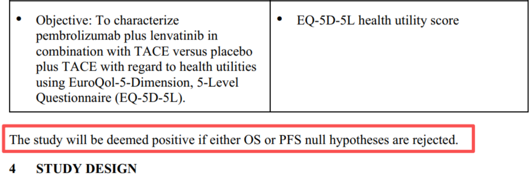 预先分配:两个终点一开始就把α值给分配掉了,加起来是0.05(如果是单侧检验则是0.025)。这种做的好处是两个终点都可以同时进行检验,不存在先后顺序。这种做法不至于出现第一个终点指标表现不佳,但第二个终点指标表现很好,但第二个终点指标因为没有分配α值,而无法进行统计检验的尴尬情况。但坏处是,每个终点可使用的α值都不是完整的,会有更高的要求。例如,KEYNOTE-240研究(晚期肝癌二线治疗:帕博利珠单抗vs安慰剂)使用的是这种形式,OS分配了0.023,PFS分配了0.002。