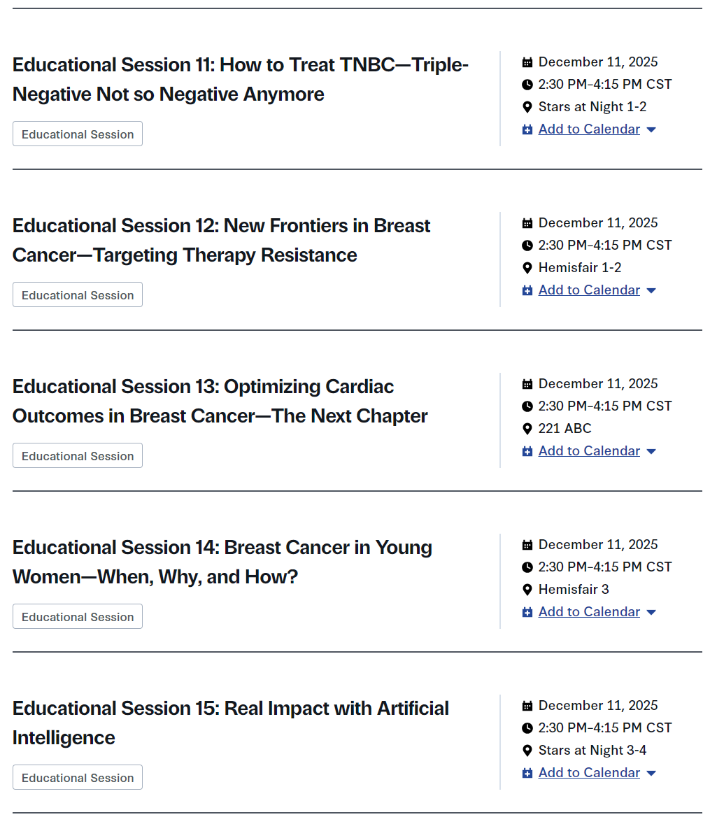 瞭望前瞻丨SABCS 2025会议第三天(12月11日)重要内容速览