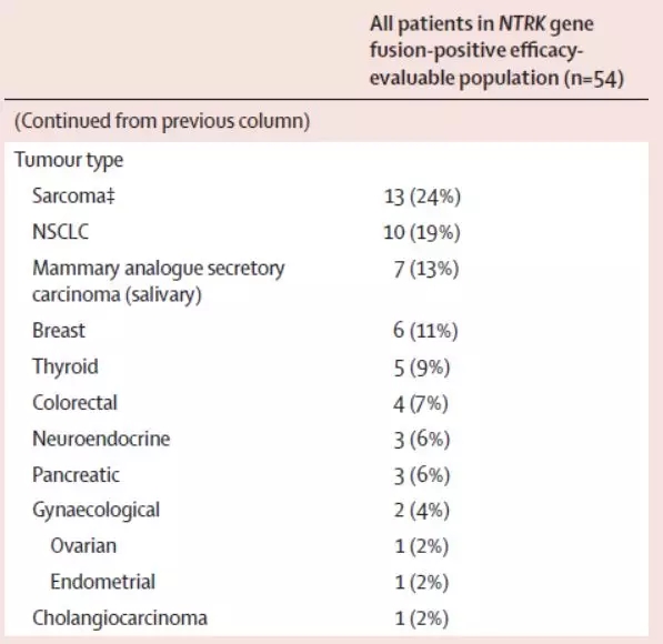 Entrectinib治疗携带NTRK融合患者的疗效及安全性