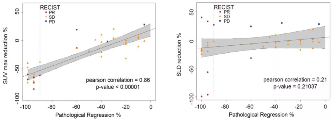 图3. PD-L1表达水平与病理退缩之前的相关性