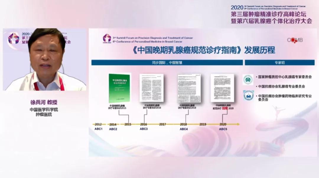 2020年8月15~16日,第三届肿瘤精准诊疗高峰论坛暨第六届乳腺癌个体化治疗大会在北京召开。在此次大会上,《中国晚期乳腺癌规范诊疗指南》正式发布。中国医学科学院肿瘤医院徐兵河教授对指南的发展历程及更新要点进行介绍。该指南由从“中国版ABC共识”升级蜕变而来,将进一步推动中国晚期乳腺癌的规范化诊疗水平提升。