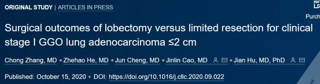 肺叶切除并淋巴结清扫是早期肺癌患者的标准手术方式,近期,来自我国的学者分析了对于<2cm的磨玻璃结节,手术方式对患者预后的影响,研究结果于10月15日发表于最新一期的Clinical Lung Cancer杂志。