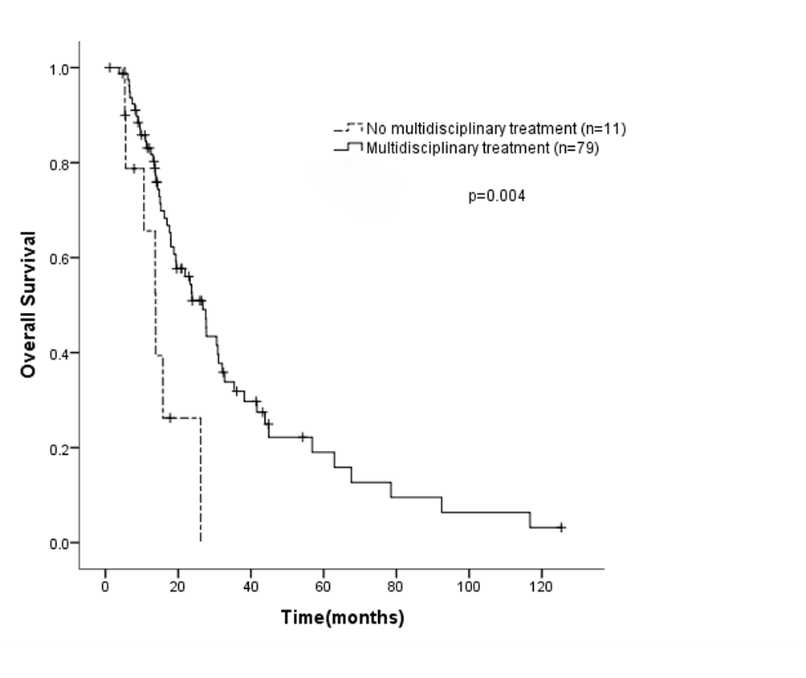 图2.接受或不接受多学科治疗的脑转移患者的总生存