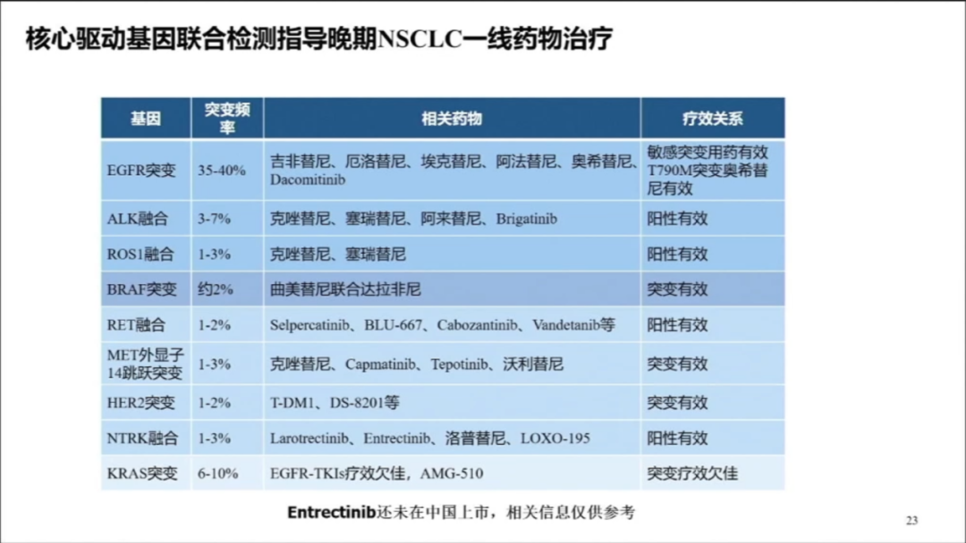目前在临床实践中,约2/3的非鳞NSCLC患者可以找到明确的驱动基因,尤其是目前随着cMET、RET、NTRK等靶点的药物陆续上市,这些靶点也成为了持续关注的热点。