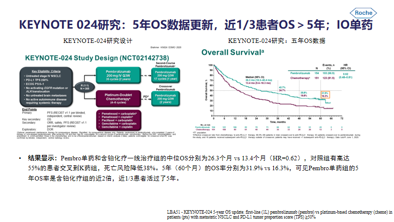 今年同时也更新了ALEX研究5年随访研究。相较于克唑替尼,阿来替尼ALEX研究的OS仍未达到终点,从生存曲线来看,阿来替尼的中位治疗持续时间几乎是克唑替尼的3倍,也因此这些结果继续支持阿来替尼作为初治晚期ALK+NSCLC患者的一线、优选标准治疗。