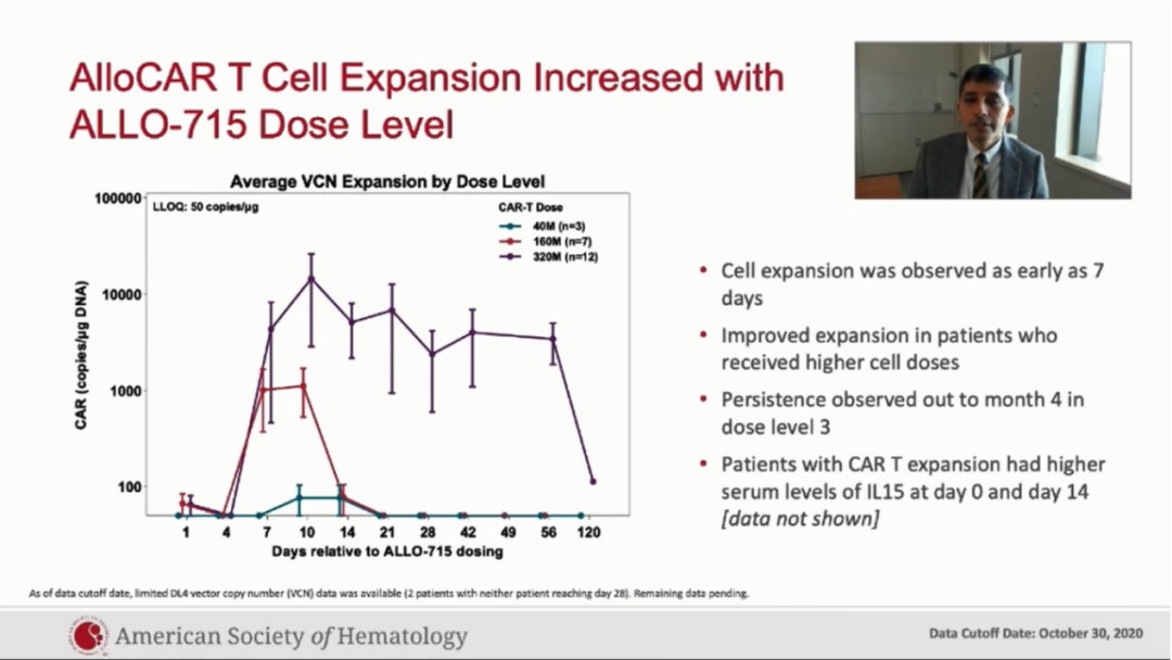 ③截止观察终点时没有关于ALLO-715相关剂量限制性毒性(DLTs)、神经毒性(ICANS)以及移植物抗宿主病的报道。