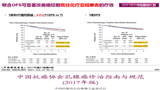 A:首先,SOFT研究5年结果证实了OFS+TAM/AI在中高危人群中的获益优势,得到各大指南的认可和推荐。
