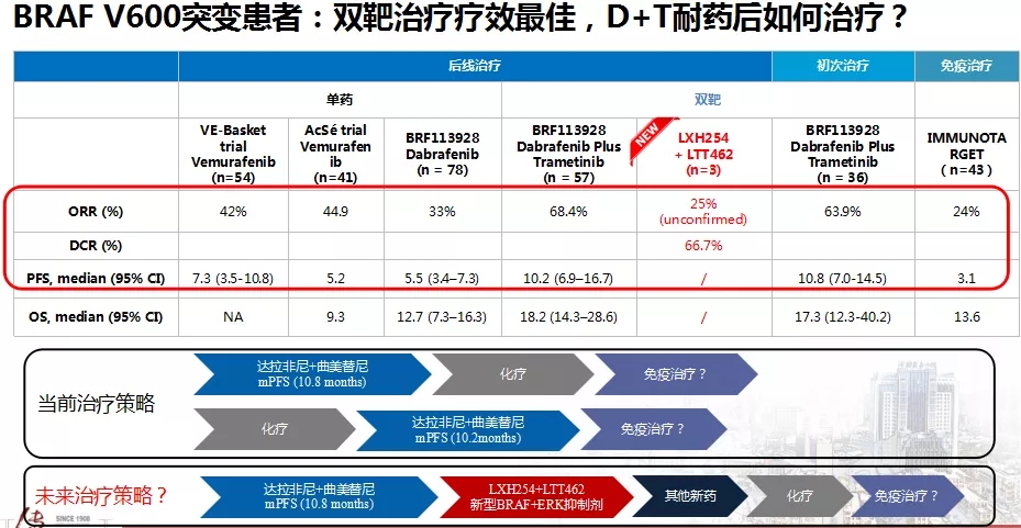 BRAF V600E:达拉非尼+曲美替尼成为目前最佳治疗选择,获NCCN指南优先推荐,CSCO指南III级推荐;