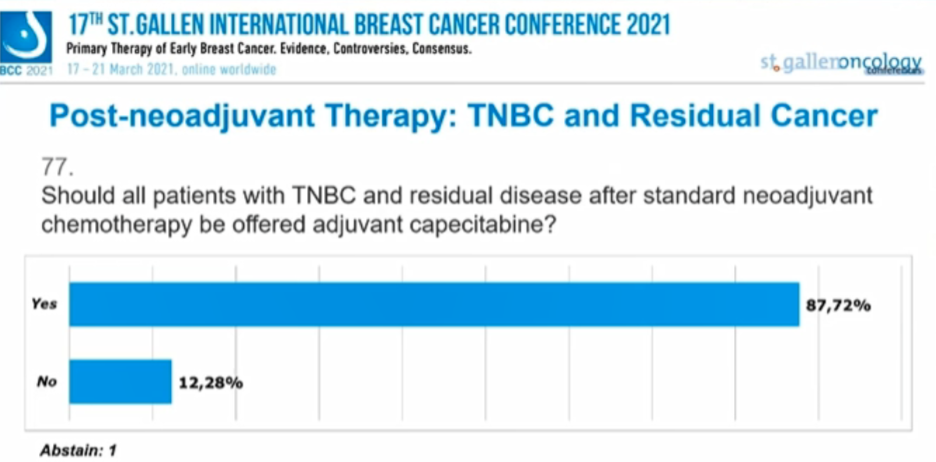 经标准新辅助化疗后有残存疾病的TNBC患者是否都应给予卡培他滨辅助治疗?