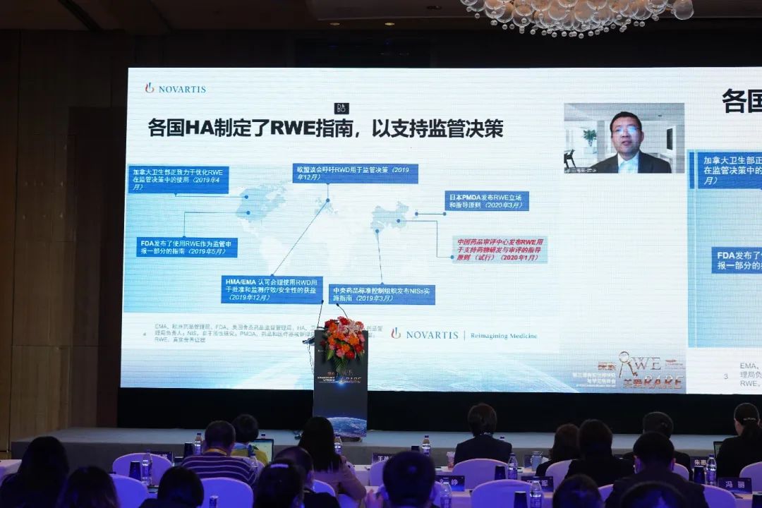 诺华医学部RWE执行总监田海军博士详细阐述了美国、欧盟、日本和我国将真实世界研究用于药品和器械审批的指导原则和相关指南,可以看出各国监管部门对利用真实世界研究作为证据持逐渐开放态度。随后,诺华肿瘤医学部RWE和数据科学副总裁Adrian Cassidy博士,分享了诺华利用RWE,支持罕见病领域例如SMA、肺癌罕见突变等相关药物的研发和获批的具体案例。