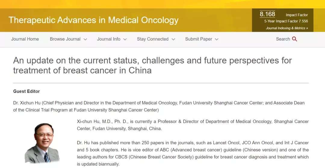中西交融,乳腺癌中国特刊Therapeutic Advances in Medical Oncology亮相