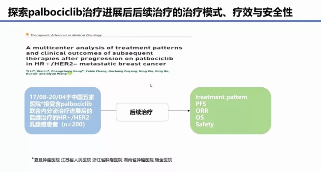 [3] Li Y, Li W, Gong C, et al. A multicenter analysis of treatment patterns and clinical outcomes of subsequent therapies after progression on palbociclib in HR+/HER2 metastatic breast cancer[J]. Therapeutic Advances in Medical Oncology, 2021, 13: 17588359211022890.