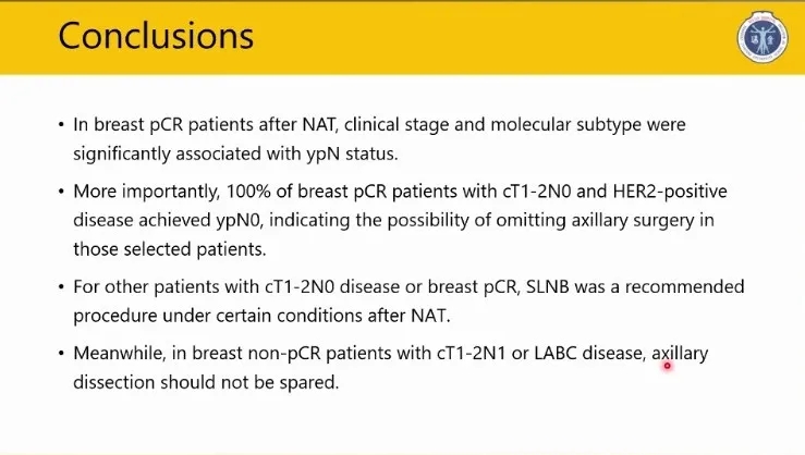 [4] Hong J, Tong Y, He J, et al. Association between tumor molecular subtype, clinical stage and axillary pathological response in breast cancer patients undergoing complete pathological remission after neoadjuvant chemotherapy: potential implications for de-escalation of axillary surgery[J]. Therapeutic Advances in Medical Oncology, 2021, 13: 1758835921996673.