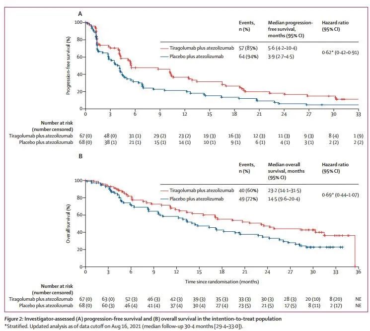Tiragolumab 是一款针对TIGIT的人源化单克隆抗体,前期临床研究中发现,该药与其他PD-1的免疫检查点抑制剂联合治疗具有良好的耐受性。这项II期临床研究旨在探索Tiragolumab 联合阿替利珠单抗在PD-L1阳性人群中的疗效及安全性。
