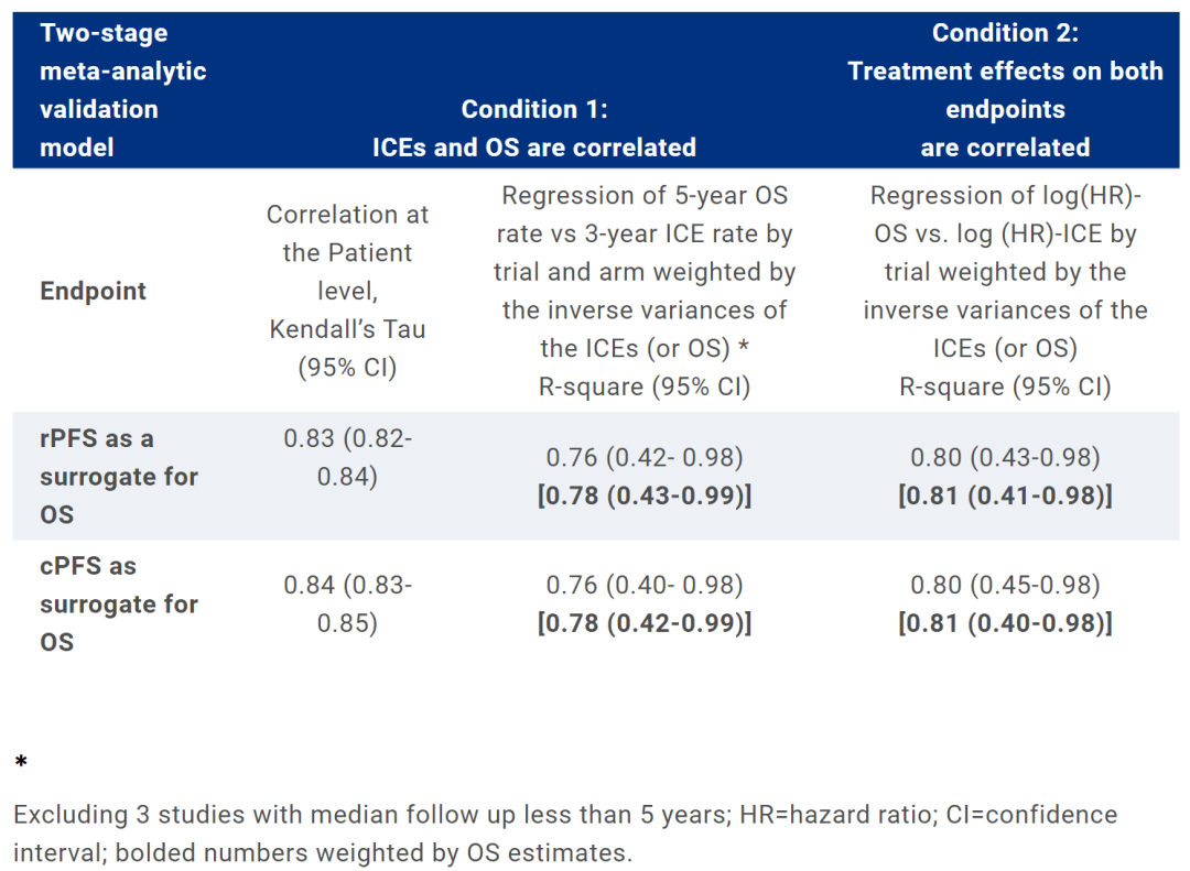 陈守臻教授:在ASCO报道的这项研究中我们可以看到,从长远的数据来看,像rPFS或cPFS等衡量中期结果的指标,与OS有非常好的相关性,如果rPFS或cPFS的结果较好,OS结果也会相对较好。我们知道整体来说前列腺癌的预后非常好,但观测OS结果需要很长的时间,而rPFS或cPFS这些指标能够很好的帮助我们分析一些临床研究的数据。很多大型的前列腺癌临床研究都把rPFS作为主要终点,这体现了研究的科学性和客观性。