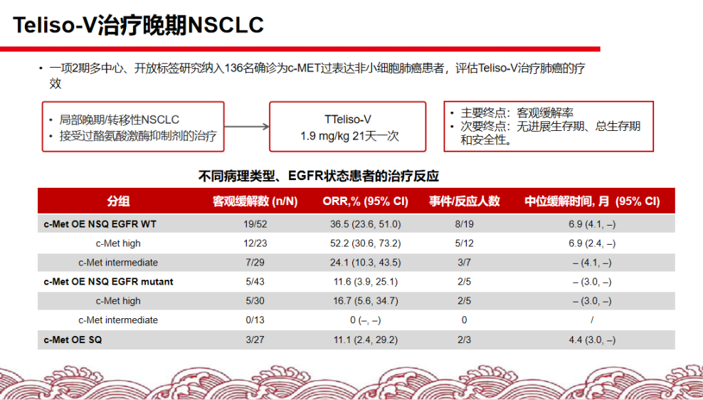 Teliso-V对比多西他赛用于晚期c-MET过表达NSCLC患者二线治疗的3期研究(NCT04928846)已经启动;另一项2期研究(NCT05513703)则将探讨Teliso-V用于晚期c-MET扩增NSCLC患者的一线治疗。