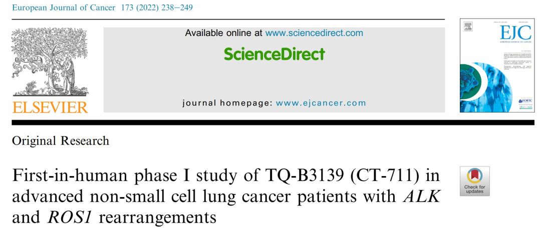 TQB-3139针对ALK及ROS1阳性的晚期肺细胞肺癌患者具有良好的耐受性,且展示了良好的抗肿瘤活性。