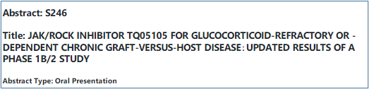 《肿瘤瞭望》:您在本次大会上的一项口头研究(S246)探讨了JAK/ROCK抑制剂TQ05105用于治疗糖皮质激素难治性或依赖性cGVHD,在此请您解读一下本研究?