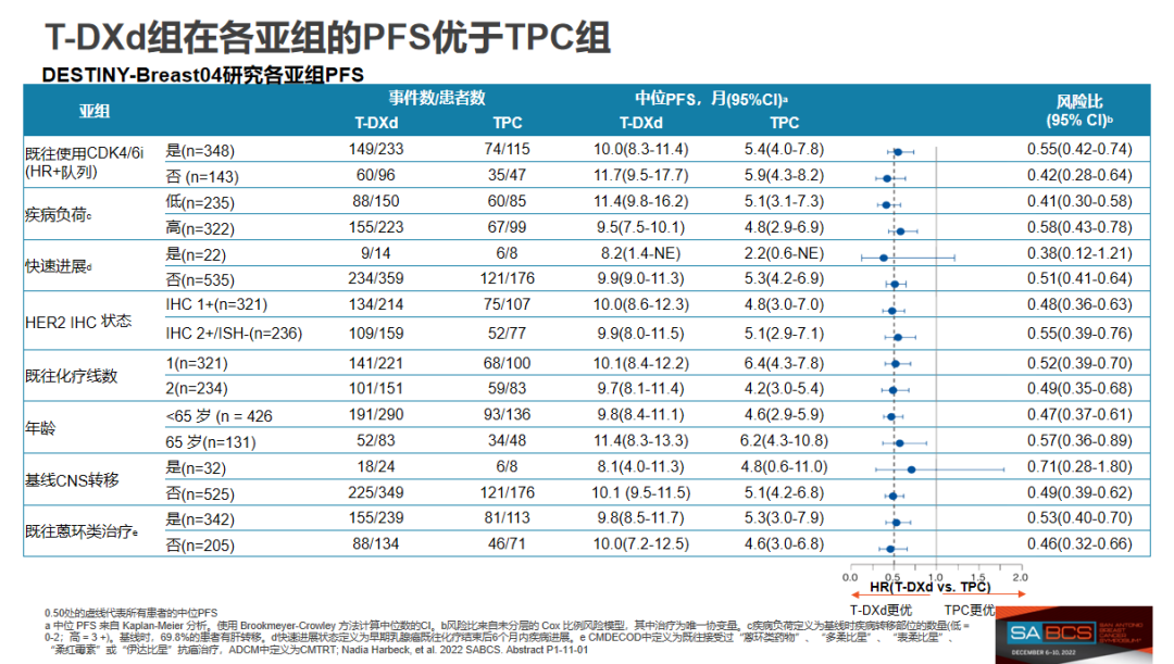 10、Nadia Harbeck,et al.Trastuzumab deruxtecan vs treatment of physician’s choice in patients with HER2-low unresectable and/or metastatic breast cancer:Subgroup analyses from DESTINY-Breast04.2022 SABCS.P1-11-01