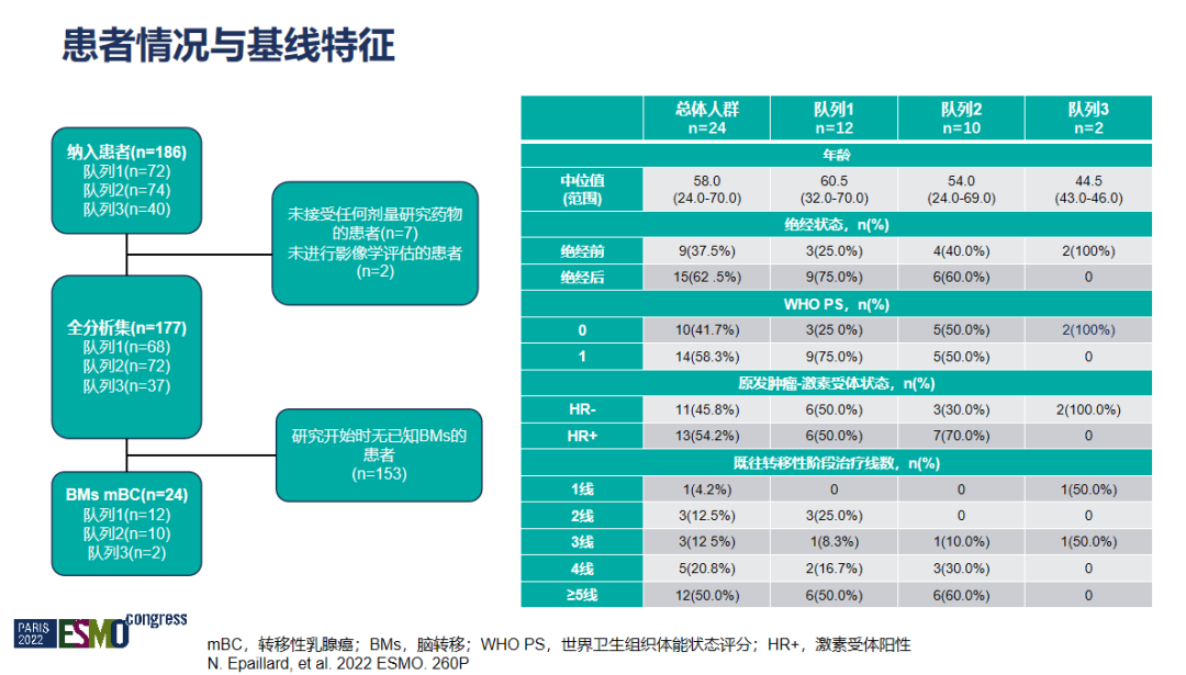 患者情况与基线特征如下图所示,在全分析集人群(n=177)中,队列1确认的ORR(主要终点)为70.6%(95%CI:58.3~81),队列2确认的ORR为37.5%(95%CI:26.4~49.7),队列3确认的ORR为29.7%(95%CI:15.9~47),队列1和队列2达到了主要终点,没有观察到新的安全信号。