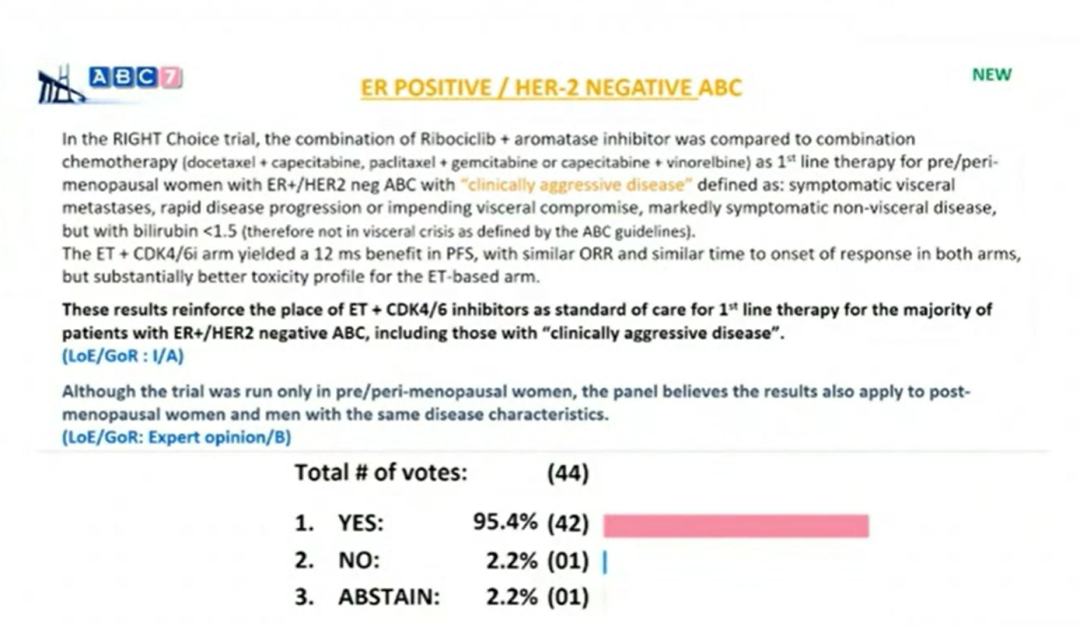 第七届晚期乳腺癌国际共识会议专家投票:HR+乳腺癌