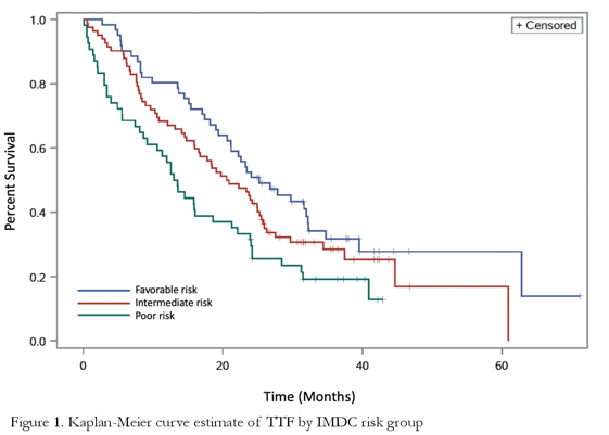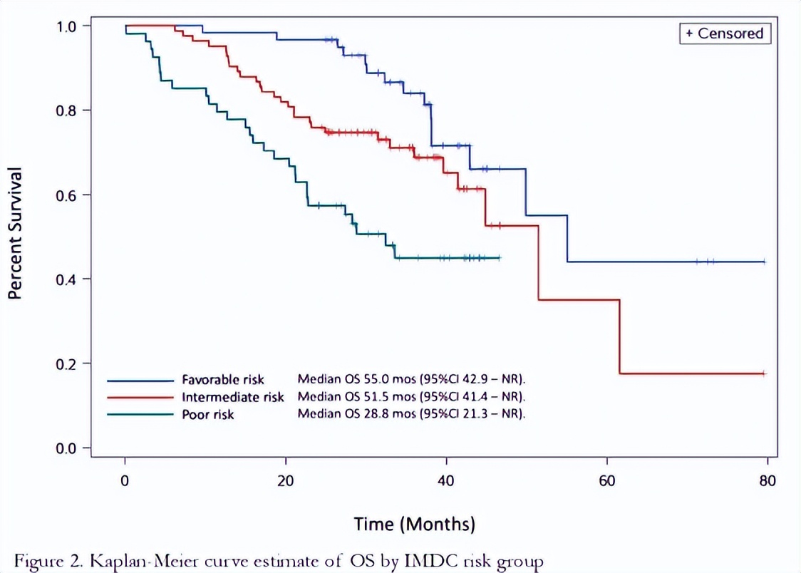 在对患者IMDC进行分层后,在IMDC低危患者中,mPFS 27.2个月;IMDC中危组中,mPFS 25个月;IMDC高危组中,mPFS 12.3个月。