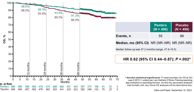 帕博丽珠单抗对比安慰剂辅助治疗ccRCC患者——III期KEYNOTE-564研究OS结果分析
